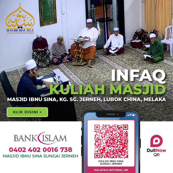 Sumbangan ini bertujuan bagi menampung kos operasi Masjid Ibnu Sina, Kg, Sungai Jernih, Lubok China, Melaka seperti utiliti (elektrik/air/unifi), penyelenggaraan dan operasi, pembangunan, majlis ilmu online, aktiviti dan program pengimarahan di Masjid Ibnu Sina, Kg, Sungai Jernih, Lubok China, Melaka.